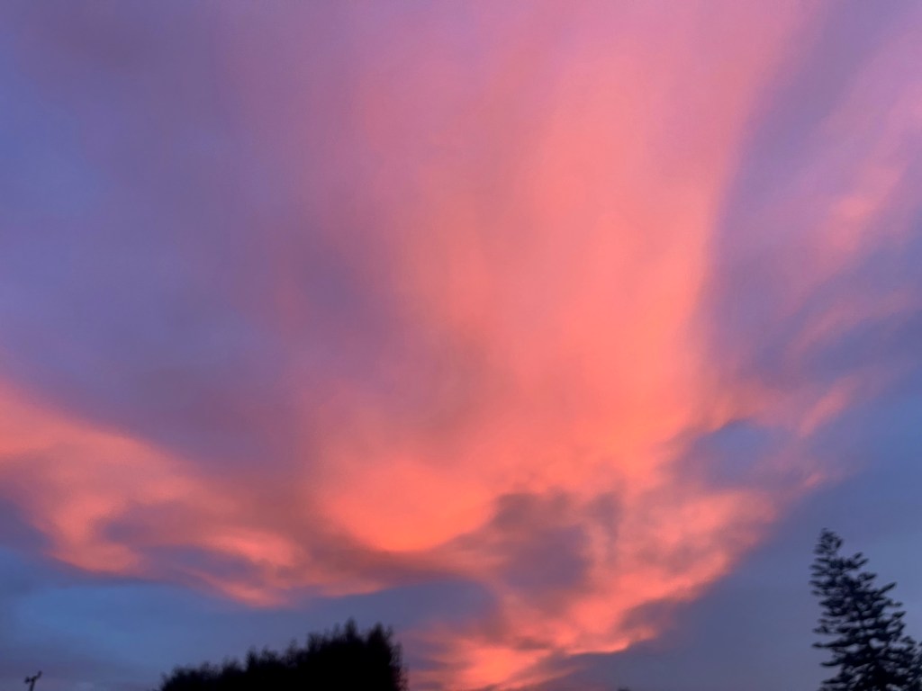 On Christmas morning the sky was streaked deep red; perhaps showing a future storm heading our way. And today, boxing day, this lovely sky was flashing pink.