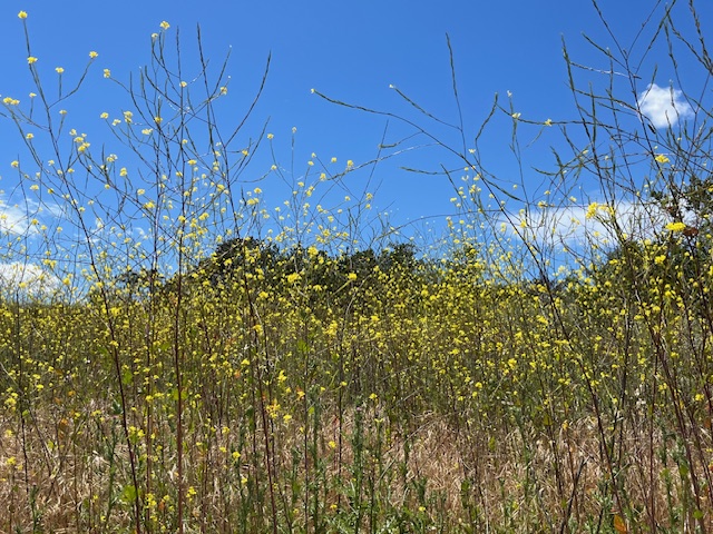 We had a little rain last Saturday followed by very strong winds, continuing the pattern we have had since January. Rain than wind. My yard is very green and filled with flowers — pink poppies, sweet peas, and coreopsis are all blooming right now. There will be more coming out in the next few weeks. We have the possibility of another light rain next week which will keep the magic going through May. And now, the butterflies are back. We have more monarch’s and yellow butterflies in the yard. I saw a Monarch trying to land on my eucalyptus. It would be wonderful to see a cluster in that tree.
