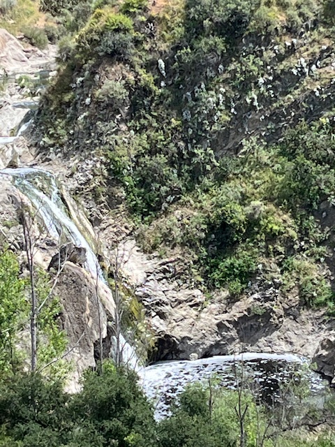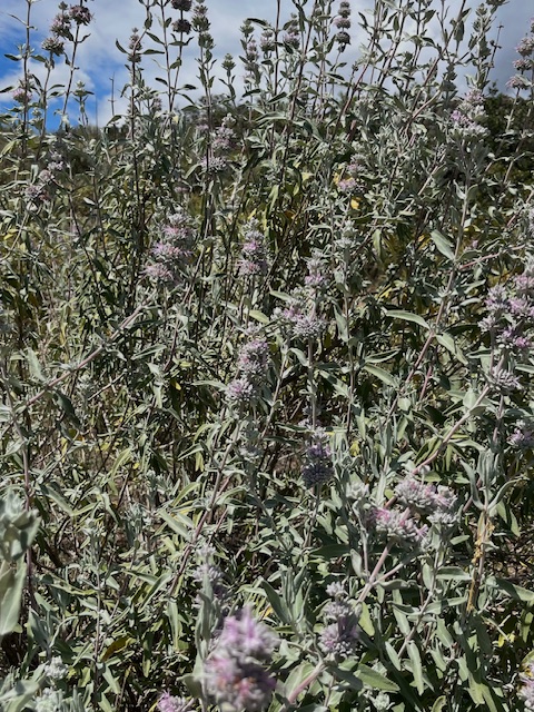 I finally went on a hike at nearby Wildwood Park. There is a small waterfall there that draws people as flowing water always does in Southern California. The waterfall is still flowing thanks to recent rains. In fact, the clouds on our way to the falls looked like we might get rain or even a thunderstorm, before they cleared out thanks to the wind. The wildflowers were somewhat gone, but there is still a lot of mustard and purple sage blooming.